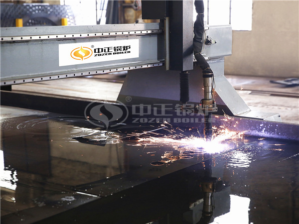 在生產過程中,中正鍋爐的下料數控率已達到80%以上,為鍋爐的焊接及裝配質量提供了有力保障。中正鍋爐使用的水下等離子切割相比火焰切割,沒有變形與飛濺,進一步提高了鍋爐各部件之間的組裝精度,進而實現整臺鍋爐的精準裝配。另外,在焊前處理方面,中正鍋爐可謂精益求精。打磨除銹、銑邊、立車倒角這三道工序杜絕了焊縫中大量氣孔的產生,保證了焊接質量。